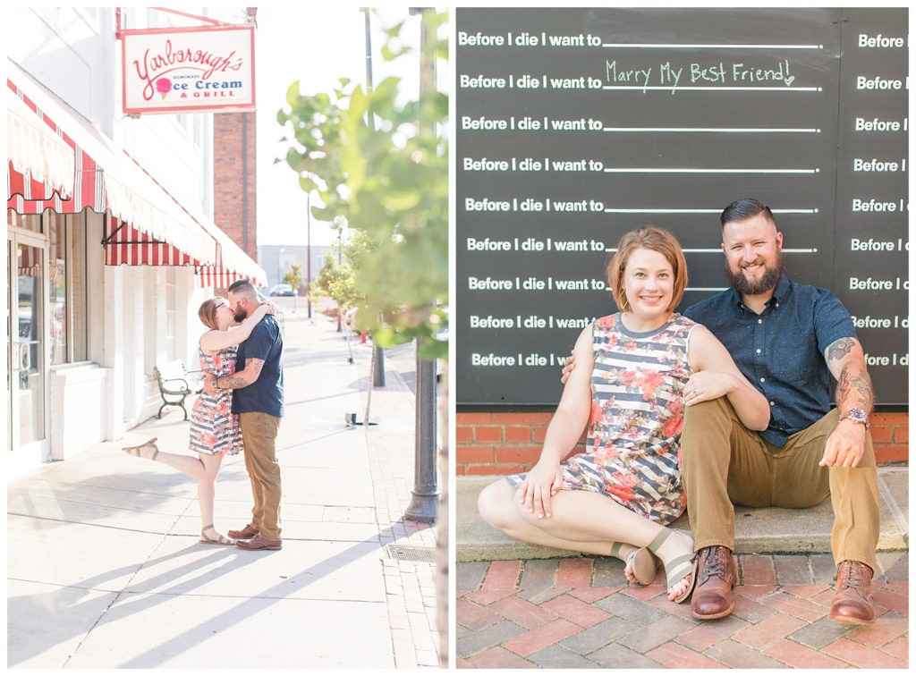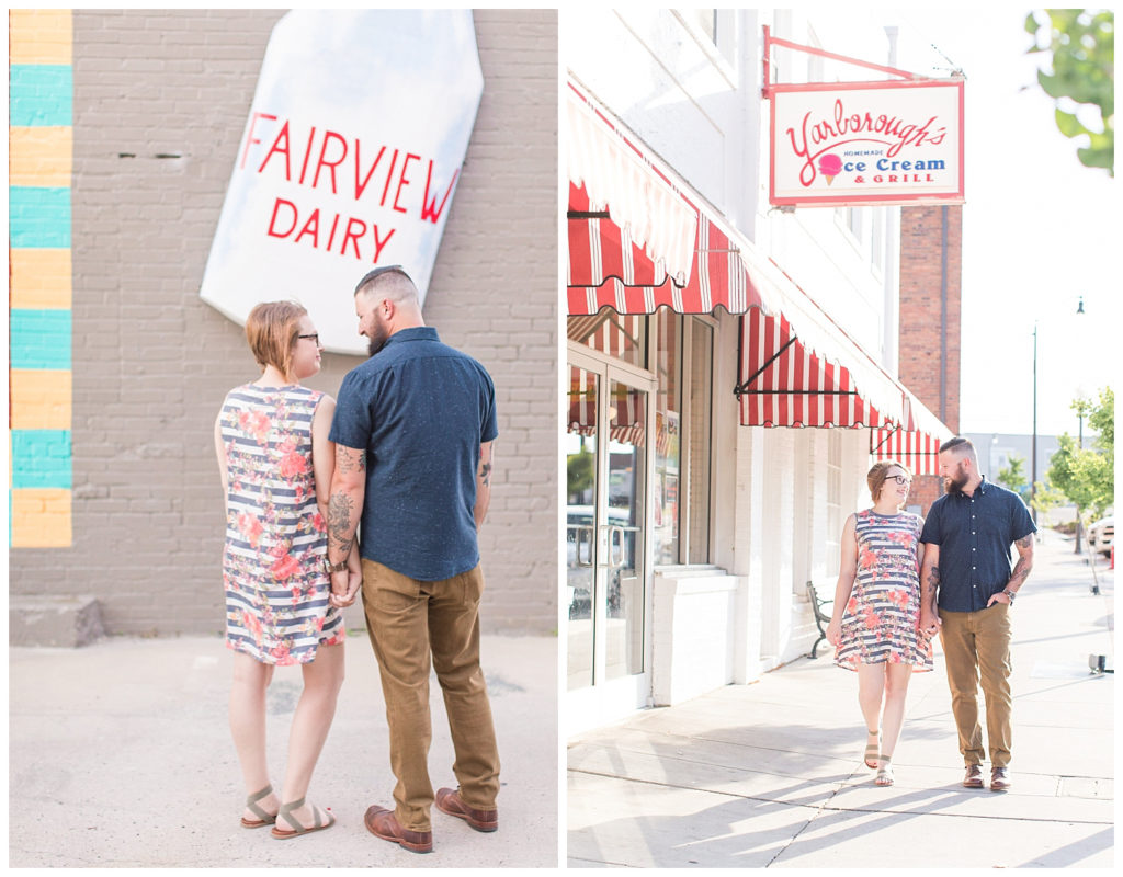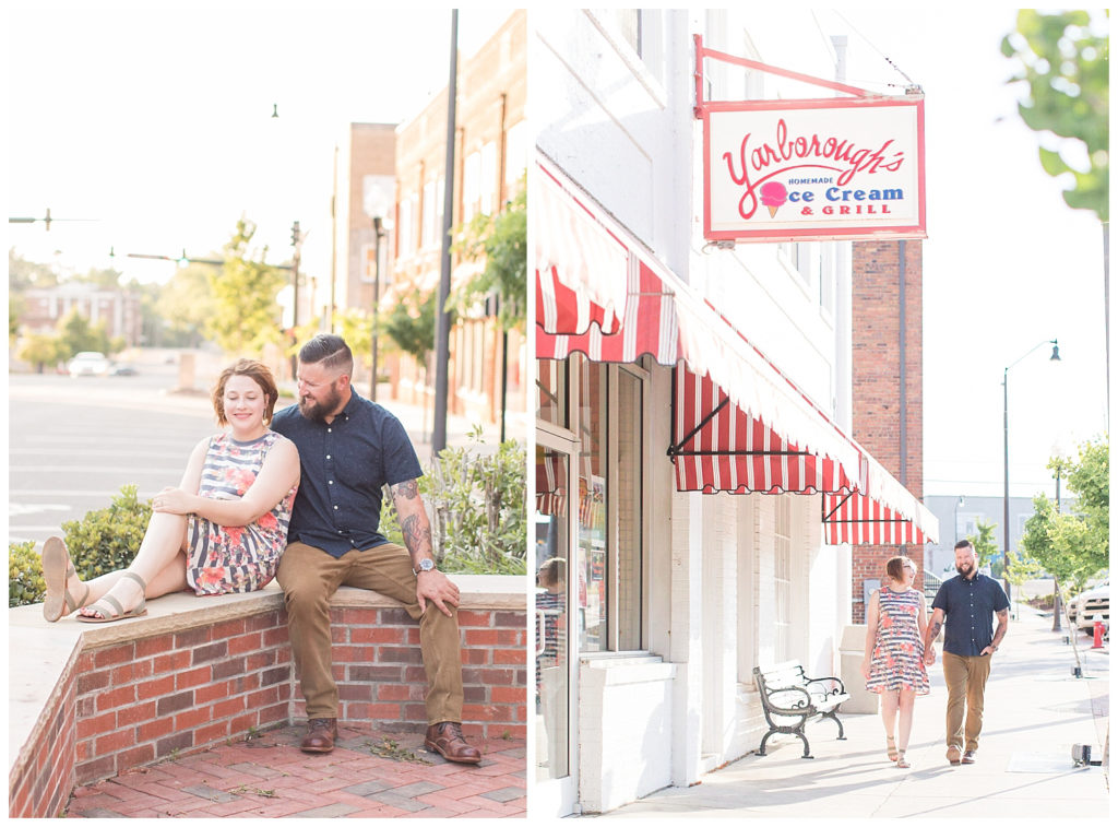 As soon as Bre told me they wanted to include one of their favorite places in their downtown engagement session I knew we were in for a treat! We started the evening at Sanford’s beloved Yarboroughs Ice Cream shop! Let me tell you, it was fun for sure but I think it was a little painful for all four of us to be there and not indulge in all that frozen goodness! Sounds like a good reason for an ice cream date very soon!
